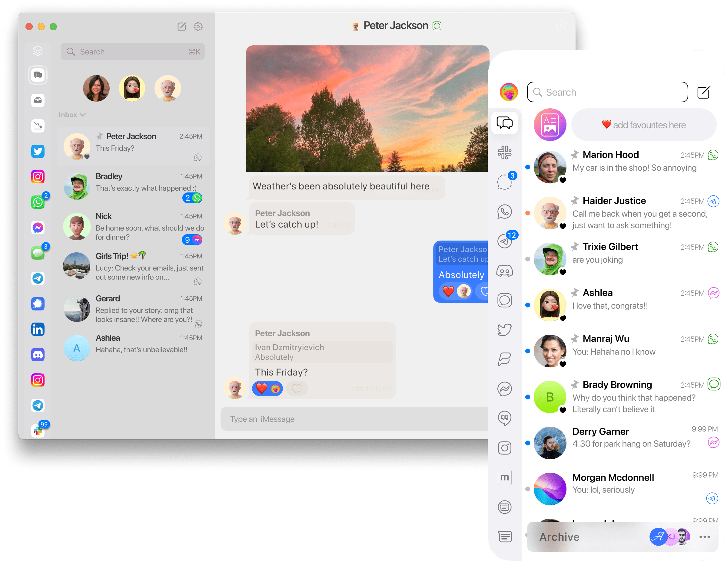 The big idea is that it combines all your chat apps into one. I installed it on my Mac and iPhone and configured it to work with: